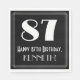 Vintagens utseende och 1920-talet/1930-talet inspirerade stil till den pappra napkin-designen har ett stort konst deco stil-inspirerat nummer "87", meddelandet "Lycklig 87:e födelsedag", ett anpassade namn och ett gräns mönster som består av tunt linjer. På födelsedagen kan pappra servetter som denna vara roligt till använda vid ett party som hålls för att fira någons åttio sjunde födelsedag. [~Z0000461]