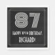 Den här vintagen ser ut som en papper napkin-design med födelsedagstext med ett stort Art Deco stil inspirerat nummer "87", meddelandet "LYCKLIG 87:e BIRTHDAY,", ett redigerbart namn och ett gräns mönster som består av linjer. Roligt, redigerbara pappra blöjor av det här slaget kan användas vid en födelsedagskalender som hålls för att hedra någons 87-årsdag. [~Z0000395]