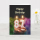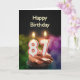 En kopp-tårta med ljus. Ljusen består av nummer 87, för en 87-årsdag. Ett födelsedagskort som passar alla.