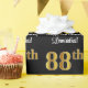 Den här snyggten, eleganten och det sofistikerade födelsedagstecknet för papper design har ett stort ordnummer "88:e" med ett utseende som inspirerats av faux/imitation guld, plus hälsning-födelsedagstecknet "Lycklig 88:e födelsedagen" och en namn som får personlig i ett skript-stil-teckensnitt. Den har också en bakgrund med svart färgad. Elegant som är papper som denna kan vara ett roligt sätt att fylla på en födelsedagspresent eller gåva som ges till någon som firar sin åttioåttonde födelsedag. [~Z0000515]