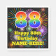 Denna spännande och trevliga pappra napkin-design för födelsedag har ett stort nummer "88" med en färgstark regnbågsspektrumövertoning som inspirerade mönster, tillsammans med meddelandet "Lycklig 88:e födelsedagen" och ett redigerbart namn. Bakgrunden är ett spännande och färgstarkt mönster som inspirerats av brinnande berömda fyrverkerier. En så här kraftig papper servetter kan vara roligt till använda vid ett party som hålls för någon som firar sin åttioåttonde födelsedag. [~Z0000574]