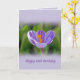 Denna lila- och vitblomma har en mjuk och rogivande vädjan. Den fotograferades i Rochester, New York. Den gör ett älskvärt födelsedaghälsningkort.
