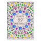 89:e födelsedagskortet. En ärorik abstrakt mönster med blommor och diamanter. Ett mycket söt, feminin och snyggt sätt att säga "Grattis på födelsedagen". En ovanlig design som utmärker sig. Skicka din födelsedag önskemål på ett elegant och vältaligt sätt. Alla diamanter på detta kort skrivs ut.