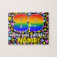 Den här pusselutformningen för öga-fångst och roligt med födelsedag har ett stort nummer "89" som har ett flerfärgat regnbågsspektrum som inspirerar gradienten mönster. Det innehåller också budskapet "LYCKLIG 89:e BIRTHDAY" och en personlig mottagare namn. Bakgrunden har ett uppsvällt mönster av hjärtan med olika färg och storlekar. Ett dynamiskt, anpassat födelsedagspressel som detta kan användas för att fira någons åttionionde födelsedag. [~Z0000611]