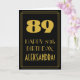På framsidan av 1920-talet-1930-talet inspirerade stil till födelseteckendesign med ett stort konst deco stil-inspirerat nummer "89", meddelandet "LYCKLIG 89:e BIRTHDAY", ett eget namn, och ett gräns mönster som består av linjer. På framsidan finns också en bakgrund med svart färgad. Insidan innehåller ett hälsning-meddelande från anpassadets födelsedag, eller kan kanske tas bort och lämnas tomt om ett meddelande ska skrivas för hand i stället. Ett sådant här födelsedagskort i anpassadet kan vara ett roligt sätt att skicka önskemål på födelsedagen till någon som firar sin 89-årsdag. [~Z0000502]