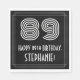 Den här pappra av roamingväntetiderna inspirerade till och vintagen med den napkin-designen har ett stort Art Deco stil inspirerat nummer "89", meddelandet "LYCKLIG 89:e BIRTHDAY", ett redigerbart namn och ett gräns mönster som består av linjer. Roligt, personlig pappra blöjor av det här slaget kan användas vid en födelsedagsfest som hålls för att fira någons 89-årsdag. [~Z0000395]