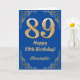 89:e födelsedagen Blått och Guld Glitter Ram Kort