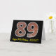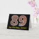 Framsidan av detta födelsematerial har ett stort nummer "89" med en rödbrun brickvägg mönster, tillsammans med meddelandet "Lycklig 89:e födelsedag" och ett redigerbart namn. Insidan innehåller ett hälsning-meddelande från personligens födelsedag, eller kan kanske tas bort och lämnas tomt om ett meddelande ska skrivas för hand i stället. Ett födelsedagskort som detta kan vara ett sätt att skicka födelsedagskalender önskemål till någon som firar sin 89-årsdag på roligten. [~Z0000399]