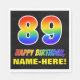 Den här färgstarka, roligt- och glädjande pappra napkindesignen har ett stort nummer "89" och meddelandet "GRATTIS PÅ FÖDELSEDAGEN,", båda färgader med en regnbågsspektrumövertoning som inspirerade mönster, tillsammans med en fet gult personlig mottagare namn. Bakgrunden är svart på färgad. Roligt, anpassadets födelsedag pappra servetter som detta kan användas på någons 89:e födelsedagsfest. [~Z0000476]