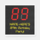Den här pappra napkin-designen för fånig och hög födelsedagsdag har ett stort nummer "89" med ett rött utseende för den digitala visningen stil, tillsammans med en personlig namn och meddelandet "89:e Födelsedagsfesten!" i den gedigna datorinspirerade gulten, på en svart färgad. På födelsedagen kan pappra servetter som denna vara roligt till använda vid ett party som hålls för att fira någons åttionionde födelsedag. [~Z0000388]