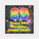 Den här roliga och glatta pappra napkin-designen med födelsedagstext har ett stort nummer "89" med en färgstark regnbågsspektrumövertoning som inspirerade mönster. Det innehåller också meddelandet "89:e födelsedagen i Lycklig" och ett eget namn. Bakgrunden har ett flerfärgat brinnande, berömmande fyrverkerier som inspirerat mönster. Pappra blöjor av det här slaget kan användas när man är värd för ett party för någon i firande på 89-årsdagen. [~Z0000574]