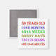 89:e årsdagen räknar ned år, dagar, månader, timmar och minuter. En födelsedagspresent till ge paus för eftertanke! Man har tagit hänsyn till läderåren!