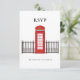 Bröllops-svarskort med en illustration av en ikonisk brittisk röd telefonkiosk som sällan ses idag.