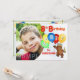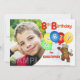 En rolig inbjudan till 8-årsfest med ditt barns foto med en prinsliknande teddybjörn som är iklädd en färgglad krona med ädelstenar och håller en massa färgglada ballonger med bokstäver som stavas PARTY. Personlig anpassning med ditt barns foto och namn gör det extra speciellt. All information om festen kan anpassas med hjälp av den medföljande mallen. Vi är specialiserade på skräddarsydda designer, så kontakta oss om du vill ha en unik specialdesignad layout med denna kungliga teddybjörn-design för ditt barns minnesvärda födelsedagsfirande.