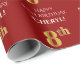 Den här eleganten och den lyxiga födelsedagstexten som omsluter den pappra designen har meddelandet "LYCKLIG 8:e BIRTHDAY,", en personlig namn, och födelsedagskalendern "8:e" med faux/imitation guld inspirerade till utseendet mönster. Bakgrunden är röd färgad. Papper som denna kan användas när presenter eller presenter förpackas i firande på någons åttonde födelsedag. [~Z0000491]