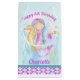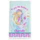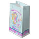 Sjöjungfru och sjögräs, vit personlig av vattenfärgskonst, födelsedagsäck i vattendblått, lila, gyllene gult, korall och rosa. Personlig med din egen födelsedag och ditt meddelande läser för närvarande Lycklig 8:e födelsedagen Charlotte. Unik konst och design av Sarah Trett för www.mylittleeden.com på zazzle.