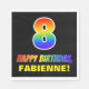 Den pappra napkindesignen för färgstark, glad och roligt har ett stort nummer "8" och meddelandet "GRATTIS PÅ FÖDELSEDAGEN,", som båda har en regnbågsspektrumövertoning som inspirerade mönster, tillsammans med en fet gult personlig-mottagare namn. Bakgrunden är svart på färgad. Roligt, anpassad födelsedagstext för pappra blöjor av det här slaget kan användas vid någons 8-årsfirande. [~Z0000476]
