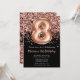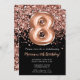 8:e födelsedag Svart Ro Guld Glitter Elegant svart och ro guld 8:e födelsedagsfest inbjudan för en 8-årig flicka med moderna skript- och roligt-folie-ballonger.