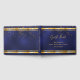 En gästbok för 90-årsfirande för honom, pojke, kille i mörkblå, marinblå bakgrund. Den blå färgen är ojämn. Med en falsk guldram och gyllene konfettispridning, gyllene bokstäver.