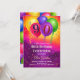 Ljus, färgglad ballongfödelsedagsinbjudan med livligt konfetti, lekfulla färgövergångar, för en glad “Födelsedagsfest” —perfekt för milstolpsfiranden.
