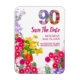 Fira 90 underbara år med denna eleganta blommiga Spara datum-magnet med rundade hörn. En färgrik blommig ”90” omgiven av akvarellblommor i rosa, lila, gul och grön skapar en glad och modern design. En praktisk souvenir för familj och vänner att visa på frysen fram till den stora dagen. Helt anpassningsbar med dina detaljer. Njut!