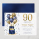 90-årsfirande marinblå ballongtårta inbjudningar