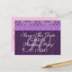 Denna lila mönster- och spetsiga "Save the Date" födelsedagspostkort är ett elegant sätt att skicka ut dina födelsedagsannonsering "save the date".