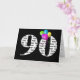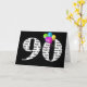 Fet nummer 90 för födelsedag med färgstark regnbågsbukett på svart