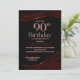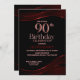 Inbjudan dina vänner och kära för att fira din 90:e födelsedag med snyggten svart och röd födelsedagsfest inbjudan.