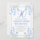 Bluebells blåa blommor, botaniskt, vattenfärgat 90:e Födelsedagsfest inbjudan. Hand målade själv vattenfärgsblåklockor. Anpassa den med dina detaljer.
