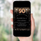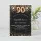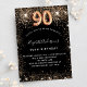 En modern, snyggt och glamorös inbjudan till en 90:e födelsedagsfest. En svart bakgrund dekorerad med faux guld glitter, gnistor. Namn är skrivet med ett modernt handskript i stil. Anpassa och lägg till information om party. Nummer 90 skrivs med ett stil-skript med ballong.