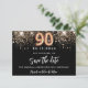 Ett giftigt och trendig Spara datum för en 90:e födelsedagsfest. En svart bakgrund dekorerad med faux guld glitter. Anpassa och lägg till datum och namn, text. Texten: Spara datumet skrivs med ett stort trendig-handskript i stil.