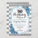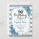 90:e födelsedag - Blå Silver vita Rand Inbjudningar