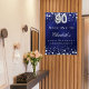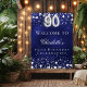 Välkomna poster för en 90:e födelsedagsfest. En marin blå bakgrund med elegant faux silver-stjärnor. Den blå färg är ojämn. Anpassa och lägg till namn och text. Vit brev.