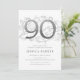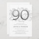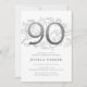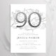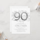 Elegant silver vita 90:e födelsedagsfest inbjudan. Anpassadets moderna femininindesign med ro botaniska accenter och faux glitter silver. Enkel perfekt för inbjudan-kort i blommigt för en snyggt kvinnlig dag firande. Anpassa med dina egna detaljer. Skrivna Zazzle-inbjudningar eller digital utskrivbar mall för omedelbar nedladdning.