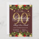 90:e födelsedag i guld och Burgundy Helgdag Glitte Inbjudningar