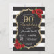 90:e födelsedag i röd ros, Guld Glitter Inbjudningar