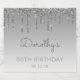 Den här chicens 90:e födelsedag med mousserande vin flaska-märken har en glatt bakgrund av silver faux glitter drop gräns och silver ombre. Anpassa dem med hennes namn i grått-handskriftsskript, med hennes födelsedag och datum nedan i sans serif-teckensnitt.