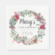 Mjuk röd ros och hjortar och bär skapar en vackert rustik blommigt andedräkt. Eukalyptus löv och andra röda blommor tillsätter botaniskt vibe på vintern. Namn är skrivet i ett stort skript. 90:e födelsedag och tack för känslor följer. Denna napkin är en del av den 90:e fåglardagen Ro och Holly-samlingen. Den innehåller många DIY-mallar som du kan använda för att snabbt skapa inbjudningar och party-leveranser.