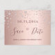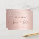 En feminin och glamorös Spara datumkortet för en 90:e födelsedagsfest. En feminin rosa, ro guld faux metallisk tittar bakgrund dekorerad med faux ro guld diamant sprinkle. Mallar för ett datum och namn/ålder 90. Mörk ro guld färgad brev. Texten: Spara datumet skrivs med ett stort trendig-handskript i stil. Tips! Om du inte vill att det ska se ut som ett vykort klickar du på anpassa, går till baksidan och tar bort delaren och lägger till frimärke.