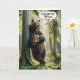 En björn står bara mot en träd som håller en mugg öl med en tass i en solbelyst sommarskog med en humoristisk tal-bubbla under en 90:e födelsedag. All text kan ändras och åldern ändras.
