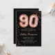 90:e födelsedagsfest inbjudan. Utformning av eleganten i faux glitter ro guld och svart. Inbjudan-kortet har ro 90 ballonger och skriptteckensnitt för guld. Perfekt för en snyggt vid firande. Berätta om du behöver anpassningsbarnas ålder.