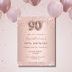 En modern, snyggt och glamorös inbjudan till en 90:e födelsedagsfest. En faux ro guld-metallisk bakgrund tittar med elegant faux guld glitter drop, målardropp. Namn är skrivet med ett modernt skript för färgaden ro guld i mörk, skrivet med stil. Anpassa och lägg till information om party. Nummer 90 skrivs med ett stil-skript med ballong.