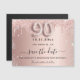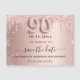 Ett giftigt och trendig Spara datummagnetkortet för en 90:e födelsedagsfest. Ro guld övertoningsbakgrund som dekoreras med dropparna ro guld och silver glitter. Anpassa och lägg till datum och namn/text. Texten: Spara datumet skrivs med ett stort trendig-handskript i stil med dekortecken. Nummer 90 med ett stil-teckensnitt med ballong.