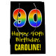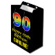 Den spännande, färgstarka och roligt-matade presentsäcksdesignen har ett stort nummer "90" med en regnbågsspektrumövertoning som inspirerade mönster, tillsammans med budskapet "Lycklig 90:e födelsedag" och en personlig mottagare namn. Bakgrunden är svart på färgad. En presentpåse som denna kan användas när en gåva eller present ge till heder för någons nittioårsdag. [~Z0000512]