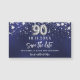 Ett modernt och elegant Spara datum magneter för en 90:e födelsedagsfest. En marin blå bakgrund med faux silver-stjärnor. Anpassa och lägg till ett datum och namn. Den blå färg är ojämn. Texten: Spara datumet skrivs med ett stort trendig-handskript i stil.