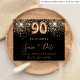Observera att det här Spara datumet är pappert och mycket tunt. Kuvert ingår inte. Om du vill ha ett tjockare Spara datumkortet (samma design) kan du besöka vår butik. Ett giftigt och trendig Spara datum för en 90:e födelsedagsfest. En svart bakgrund dekorerad med faux guld glitter. Mallar för datum och namn och text. Golden färgad brev. Texten: Spara datumet skrivs med ett stort trendig-handskript i stil.