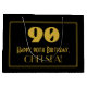 Den här roande 20-talets utseende inspirerad av presentsäcken på födelsedagskalan för vintagen har en stor konst deka stil-inspirerad nummer "90", meddelandet "Lycklig 90:e födelsedag", en personlig namn och en gräns mönster bestående av tunn linjer. Bakgrunden är svart färgad. En dylik presentpåse på födelsedagen kan användas för att figurera en gåva eller present som ges för att fira någons 90:e födelsedag. [~Z0000501]