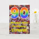 Framsidan av denna färgstarka, naturinspirerade och strålande födelsedagskalenderdesign har ett stort nummer "90" med en regnbågsspektrumövertoning som inspirerade mönster. Det innehåller också meddelandet "90:e födelsedag i Lycklig" och ett eget namn. På framsidan finns en bakgrund som skildrar det regummerade höst löv. Insidan innehåller ett hälsning-meddelande från personligens födelsedag, eller kan kanske tas bort och lämnas tomt om ett meddelande ska skrivas för hand i stället. Ett födelsedagskort som detta kan vara ett roligt för att skicka önskemål till någon som firar sin nittioårsdag. [~Z0000384]