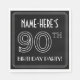 Den här snyggten, den tjugonio-eran, inspirerade konsthändelsens stil födelsematade pappra napkin-design har ett anpassade namn och meddelandet "90:E FÖDELSEDAGSFEST!". Numret "90:E" har en finare-geometrisk infogad formatering. På födelsedagen kan pappra servetter som dessa användas vid ett party som firar någons nittioårsdag eller något annat 90:e evenemang. [~Z0000659]